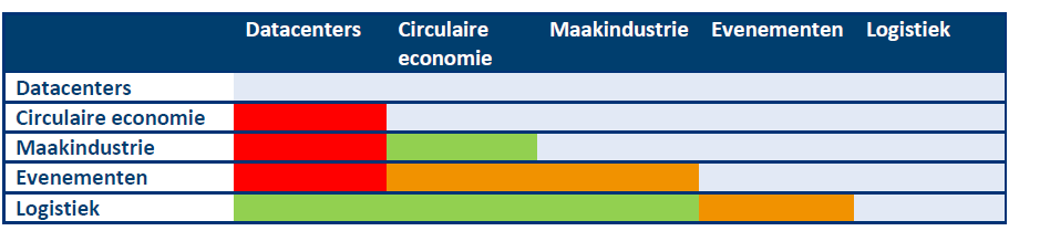 Het schema hierboven laat met name zien dat datacenters moeilijk te combineren zijn met andere functies.