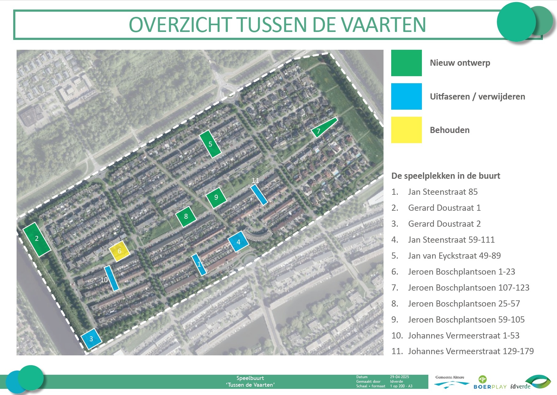 Bekijk hier de ontwerpen voor de speelplekken bij u in de wijk. De werkzaamheden gaan in week 26 van start. Naar verwachting zijn we voor de herfst klaar. De beplanting volgt in november, omdat dit de beste tijd is om betreffende soorten te planten.