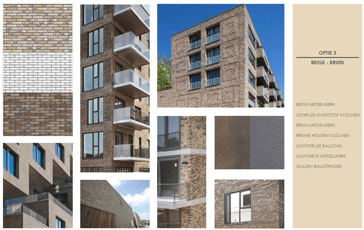 Op de ontvangen reactieformulieren wordt vrijwel unaniem de voorkeur gegeven aan de optie met de lichte tinten: optie 3 (Beige-Bruin). Het gebouw zal daarom in die kleurstelling worden gerealiseerd.