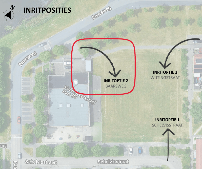 Het plan gaat uit van een inrit vanaf de Karperweg. Uit eerdere gesprekken was de conclusie dat deze variant de voorkeur vanuit de buurt heeft. Deze conclusie werd bevestigd door de reacties op de ingeleverde formulieren. Voor de verdere uitwerking van het plan is en blijft deze inrit het uitgangspunt.
